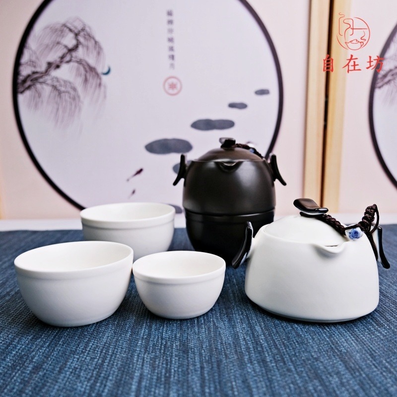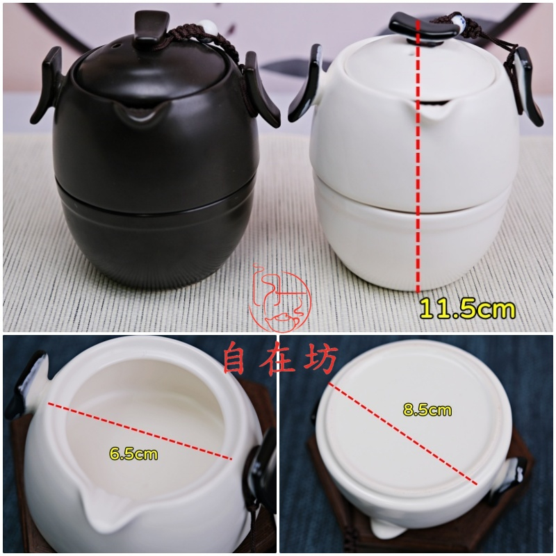 【全館滿599免運】快客杯 定窯快客杯─1壺3杯(黑/白) 便攜式茶具 隨身茶具 旅行茶具 泡茶組【自在坊茶具】