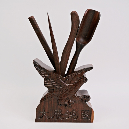 【全館滿599免運】黑檀木大展鴻圖六君子 黑檀木 茶夾 茶針 茶勺 茶撥 收納桶 六君子套裝 茶道六君子 茶道配件【自在