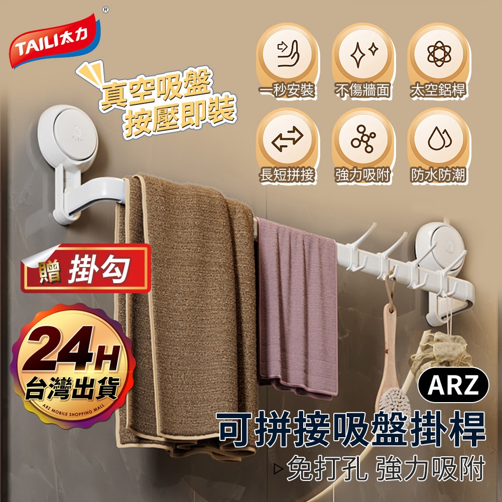 太力 無痕強力吸盤浴巾架 【ARZ】【E068】免釘浴巾架 抹布架 毛巾架 浴室收納架 門後掛架 無痕掛勾架 無痕掛鉤架
