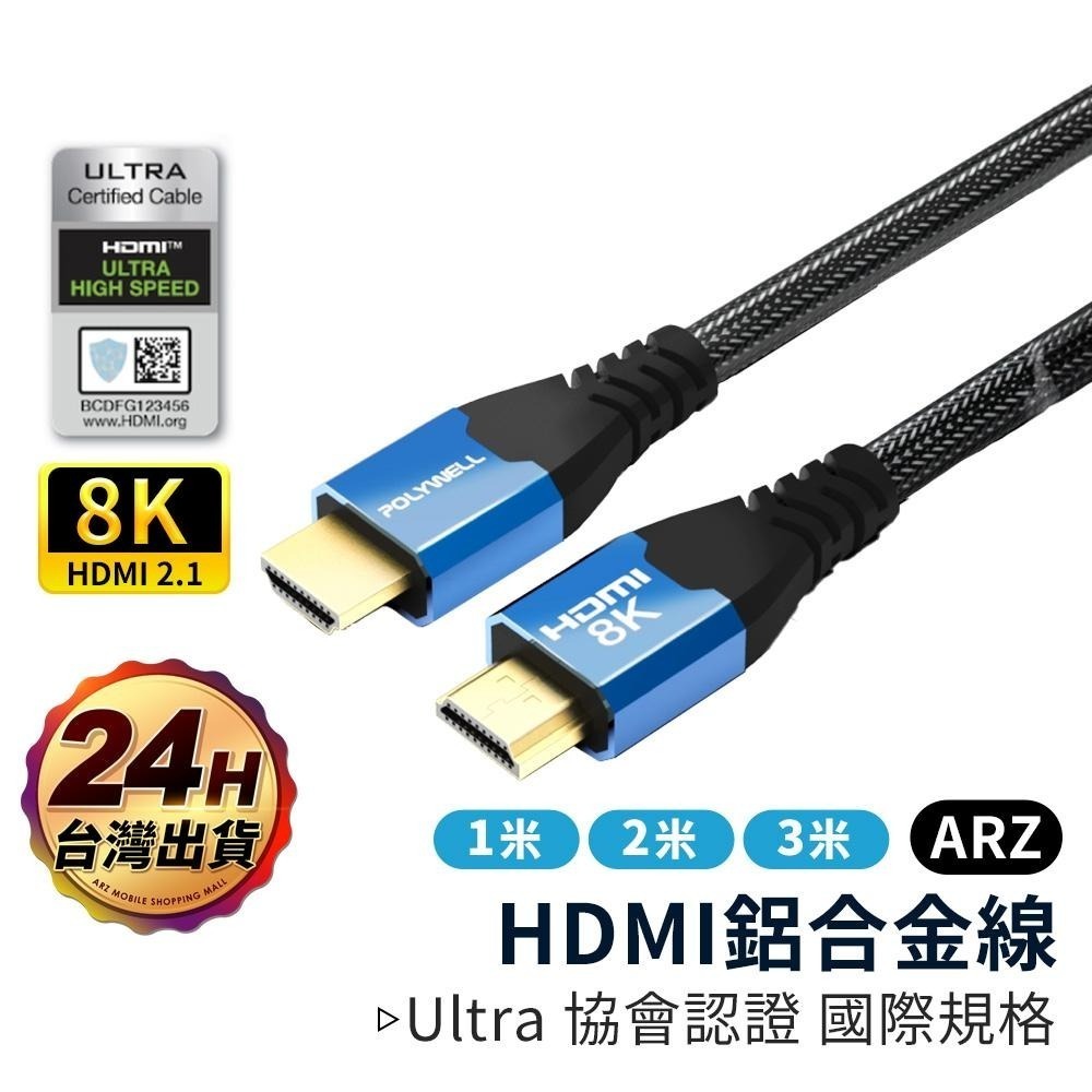 HDMI 2.1 8K 協會認證線 1~3米【ARZ】【E126】polywell 160Hz 影音傳輸線 HDMI線