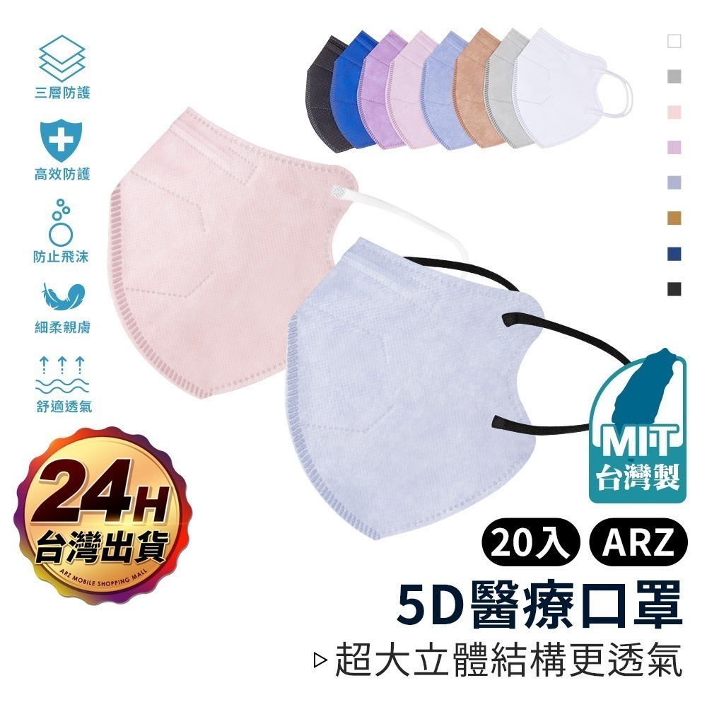 大成 醫療級 5D口罩 台灣製 20入【ARZ】【D146】蝶型口罩 醫用口罩 立體口罩 韓版口罩 無痛口罩 特殊色口罩