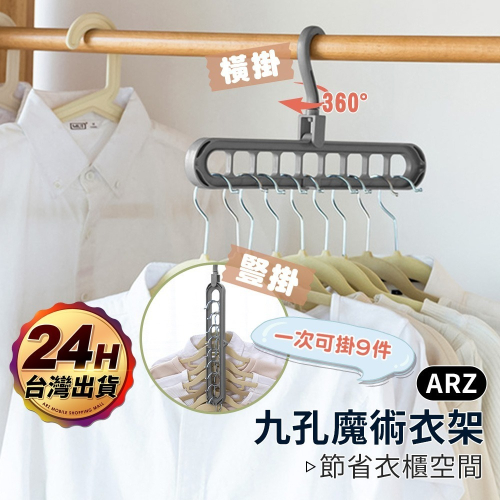多功能收納衣架【ARZ】【D275】省空間衣架 旋轉衣架 晾衣架 伸縮衣架 魔術衣架 衣物 衣服收納 曬衣神器 九孔衣架