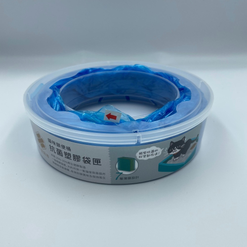 一個塑膠袋匣,大約可供一隻貓使用兩個月。