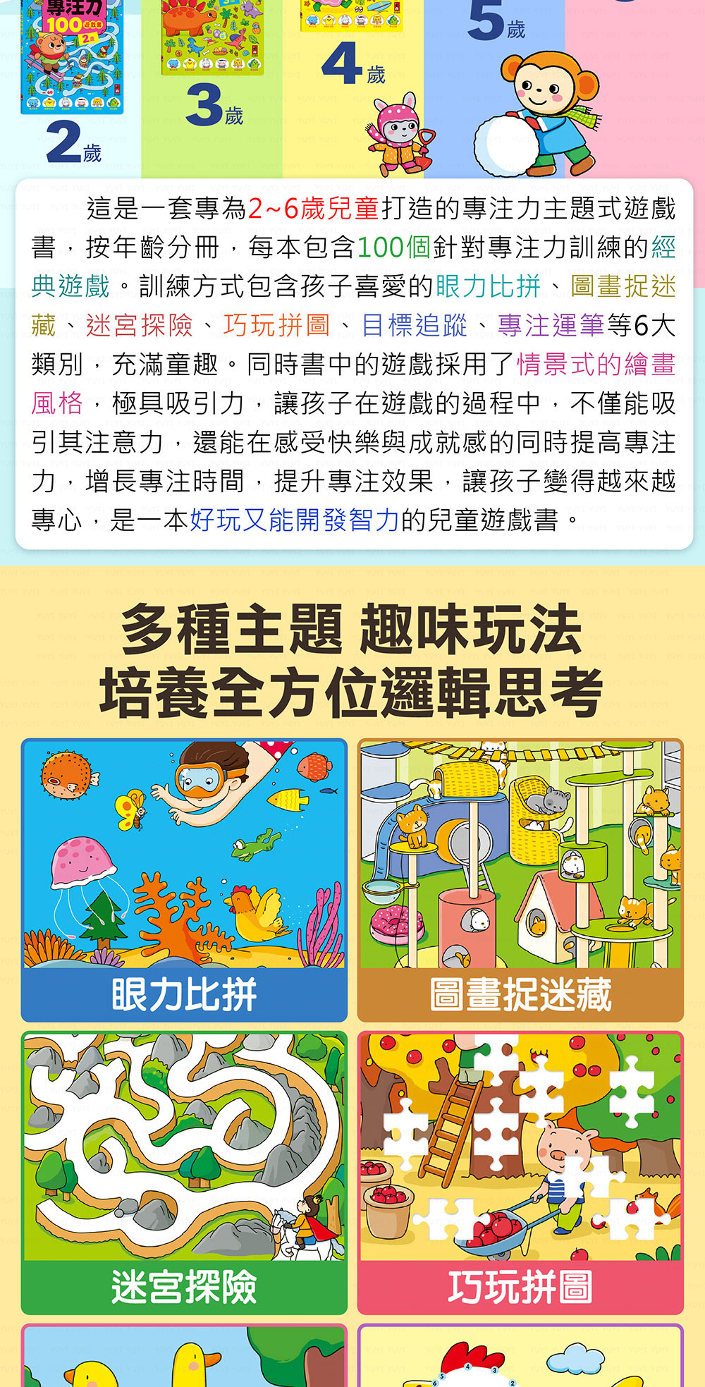 搭配5種豐富主題,培養孩子全方位邏輯思考,分齡式學習,全面提升思維邏輯,強化專注力!