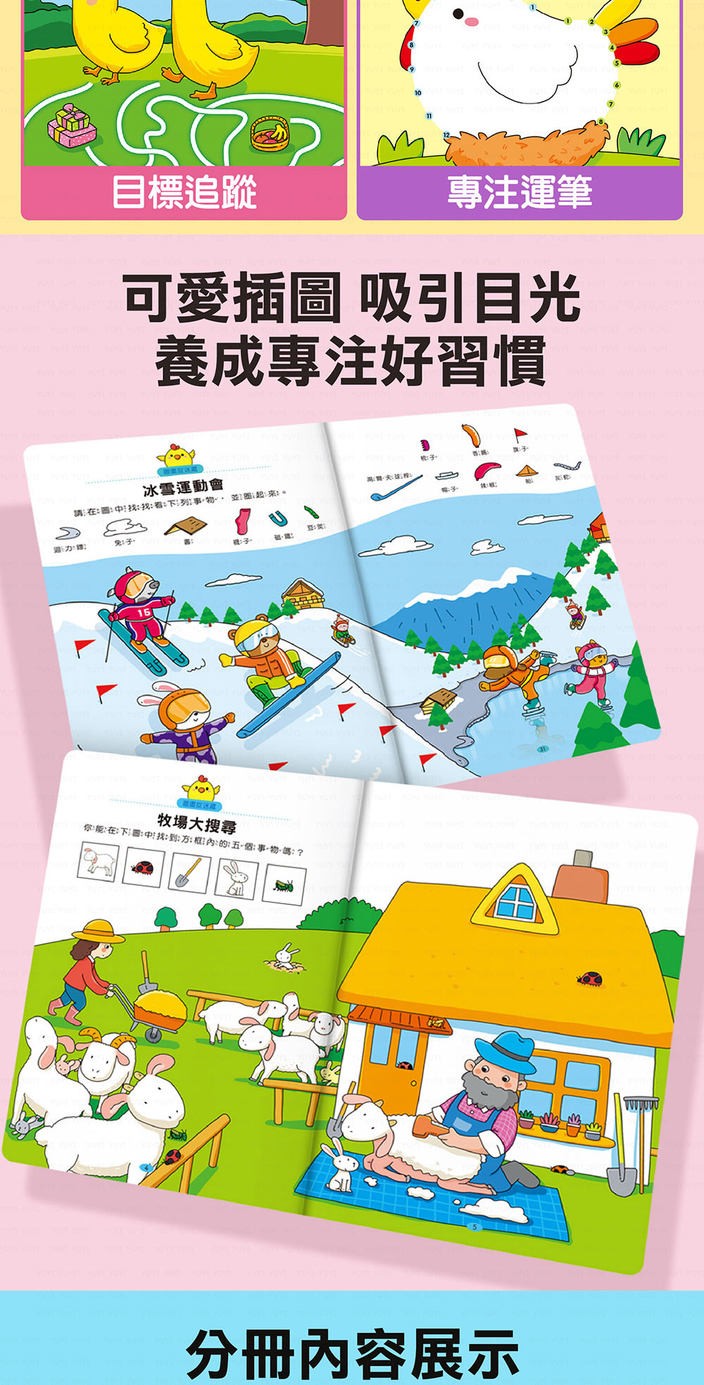 鮮艷又有趣的插圖吸引孩子目光,讓孩子養成專注的好習慣!