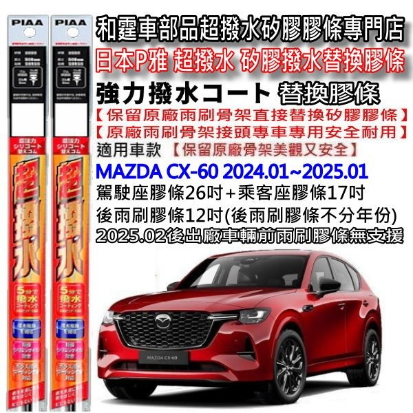 ※注意※ 2025.02以後出廠的CX60因為更改過雨刷骨架,目前暫時無PIAA膠條可以支援
