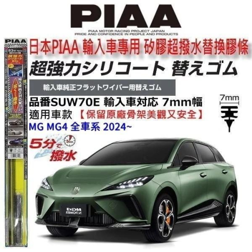 和霆車部品—日本PIAA 超撥水 MG MG4 中華名爵 保留原廠雨刷升級替換矽膠超撥水膠條 SUW70E