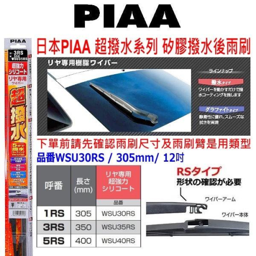 和霆車部品—日本PIAA 超撥水系列 矽膠撥水後雨刷 日本製 WSU30RS 1RS RS 12吋 14吋 16吋
