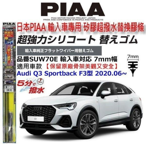 和霆車部品—日本PIAA 超撥水 AUDI Q3 Sportback 保留原廠雨刷升級替換矽膠超撥水膠條 SUW70E