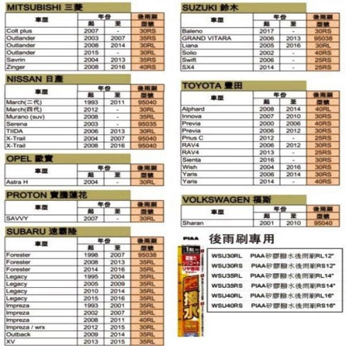 注意:下單前請務必確認您愛車上後窗雨刷適用長度及接頭規格,部分NISSAN車款及韓系品牌車款及歐美品牌車款不支援使用