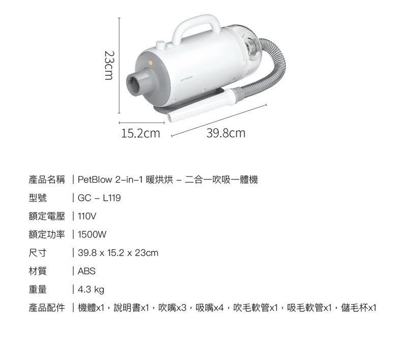 🔖 產品名稱:grantclassic PetBlow 暖烘烘 二合一吹吸一體機