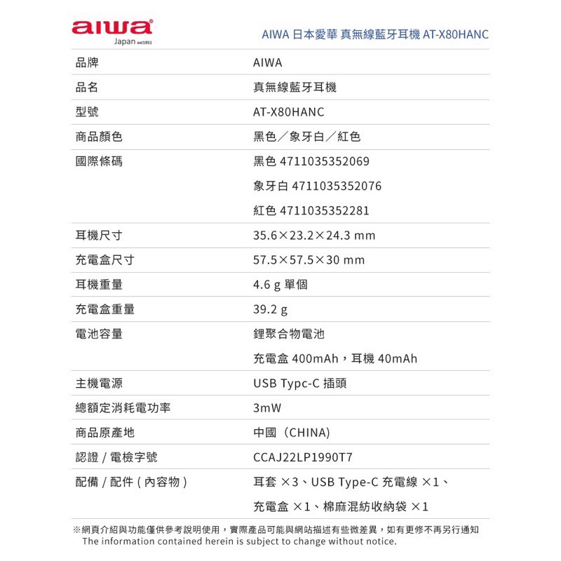 AIWA 日本愛華 真無線藍牙耳機 AT-X80Q