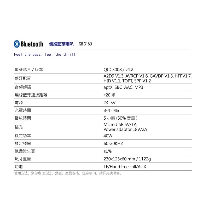 AIWA 日本愛華 藍牙喇叭 SB-X150