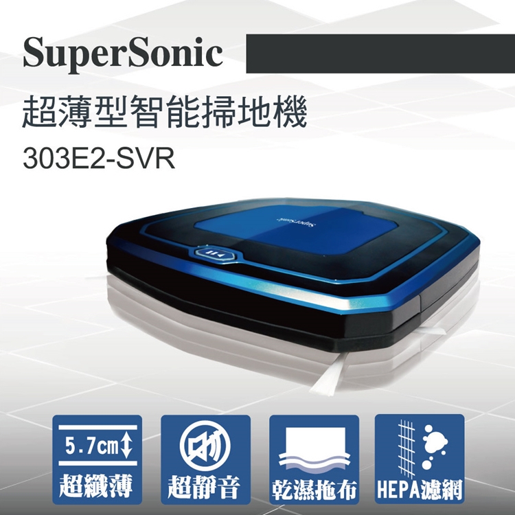 品牌HEARN禾聯型號303E2-SVR顏色藍色系產地中國尺寸300x300x57mm重量3.0KG配件原廠保證書, HEPA濾網, 遙控器, 集塵盒, 變壓器, 毛刷, 邊刷, 清潔布電壓110V電池充電模式自動回充適用坪數10坪以下清潔模式直線清掃, 沿牆走, 隨機走充電時間3~5小時電池使用時間2HR保固1年