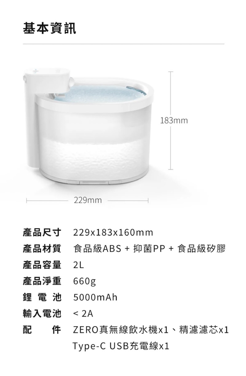 📦 內容物:主機*1,飲水槽*1,吸水管*1,海綿*1,濾心*1,充電線*1