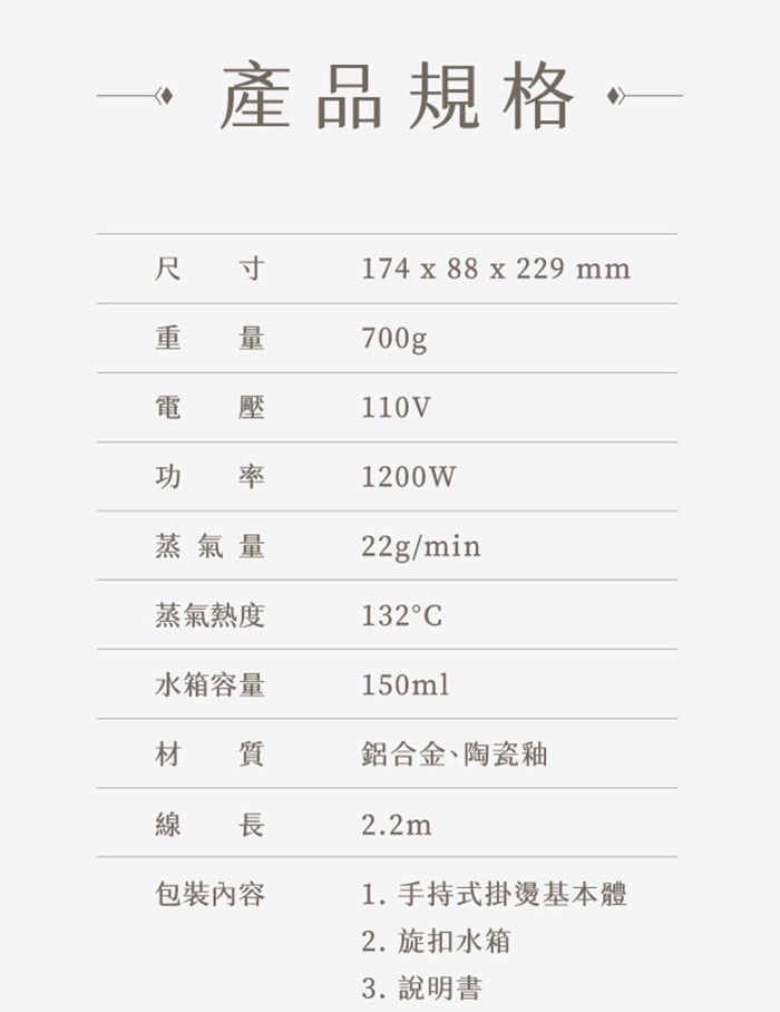 包装內容:1.手持式掛燙基本體