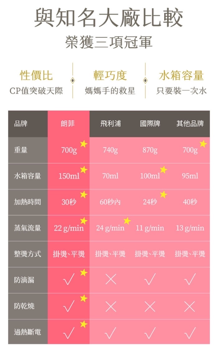 ◆22g/min超大蒸氣量深入纖維