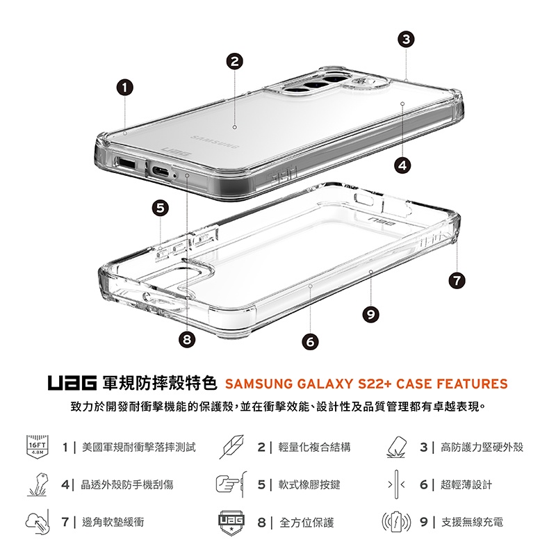 ‧ 高防護堅硬外殼、邊角橡膠吸震緩衝