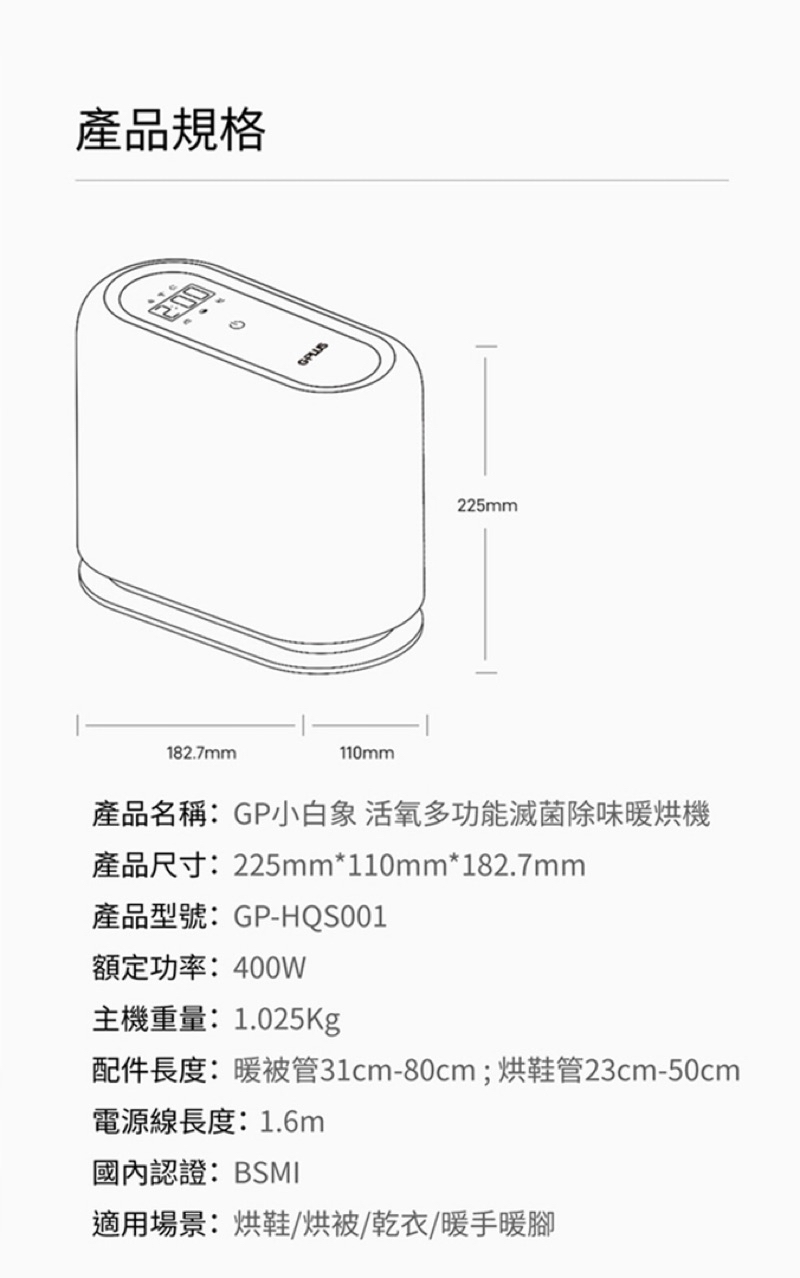 產品名稱:GP-HQS001活氧多功能滅菌除味暖烘機