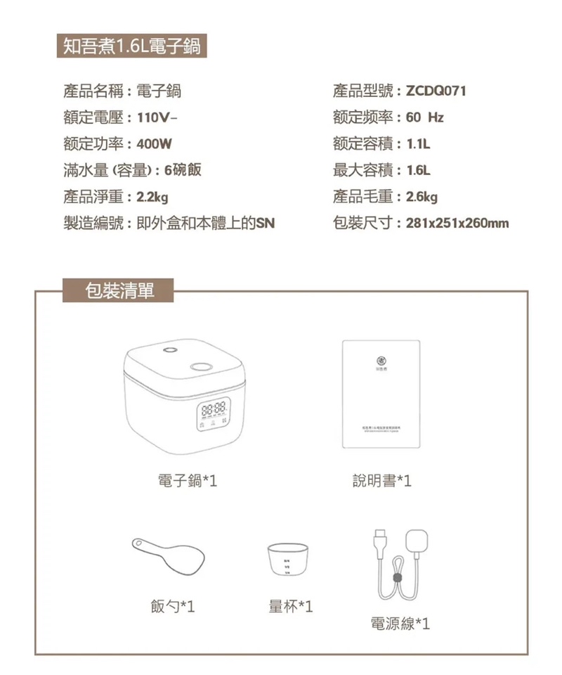 小米有品 知吾煮智能電子鍋 台灣公司貨