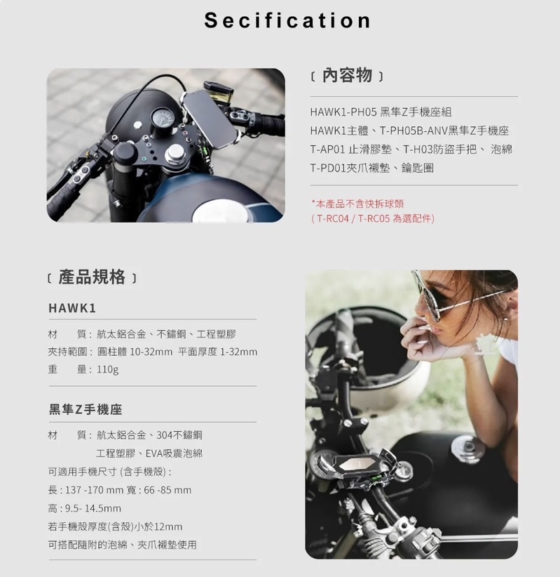TAKEWAY HAWK1極限運動夾組-黑隼Z手機座版-HAWK1+PH05