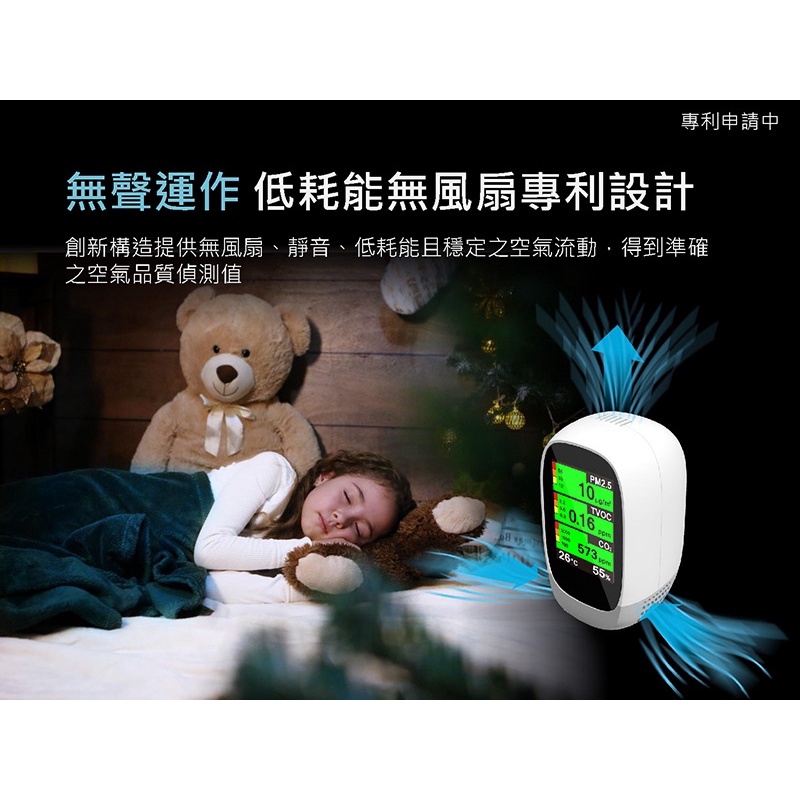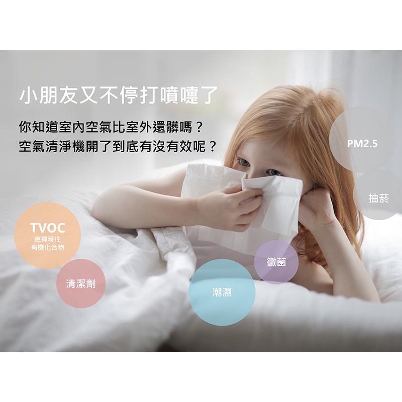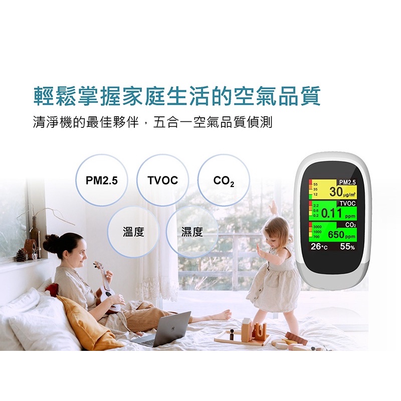 偵測項目:PM2.5、CO2、TVOC、溫度、濕度
