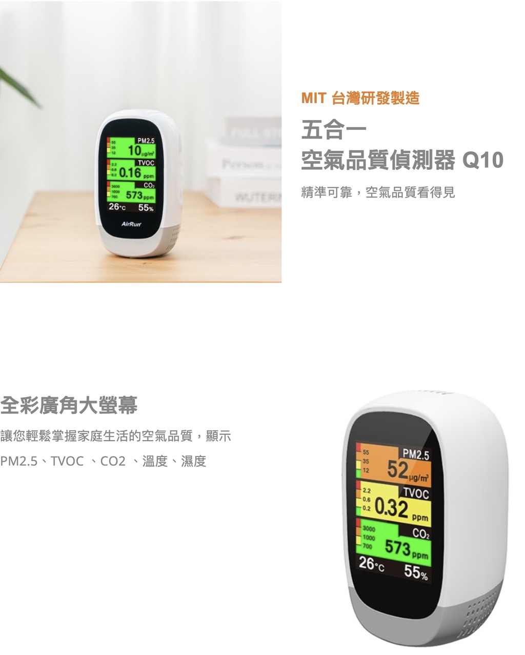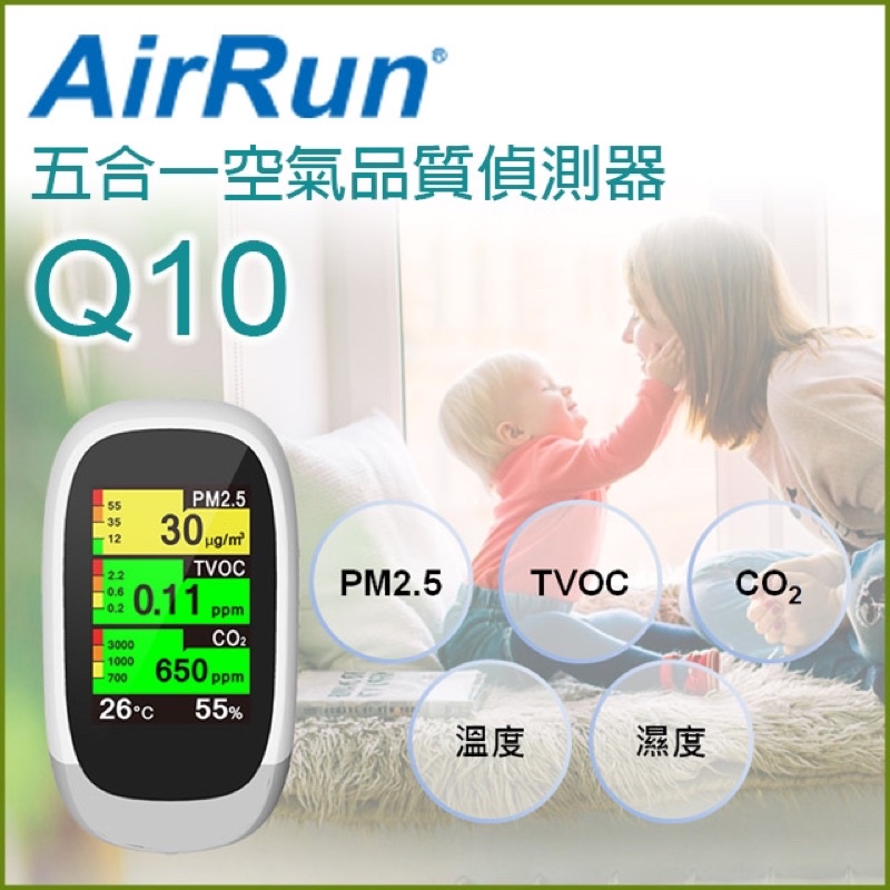 #PM2.5 #CO2 #TVOC #溫度 #濕度 #AirRun #Q10 #空氣品質偵測器