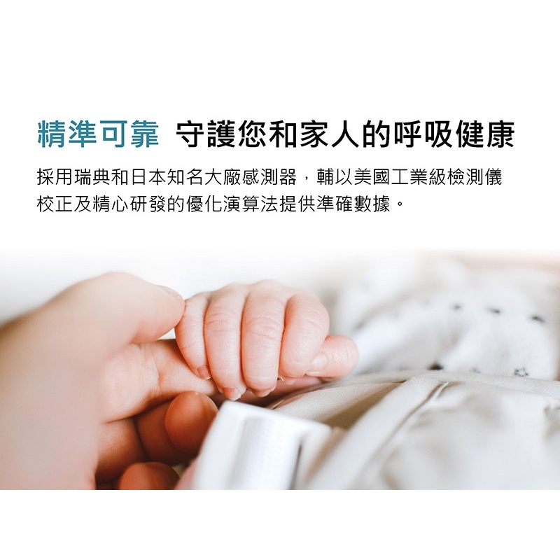 ✬採用瑞士及日本知名大廠感測器,美國工業級檢測儀校正、專業演算法優化,守護您的呼吸健康 ✬無聲運作,低耗能無風扇專利設計 (專利申請中)