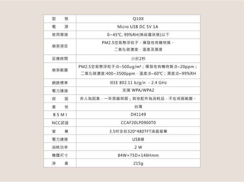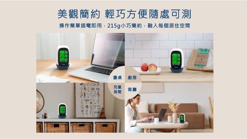 ✬偵測空氣品質重要指標:PM2.5、TVOC 總揮發性有機化合物、CO2(演算值) 、溫度、濕度
