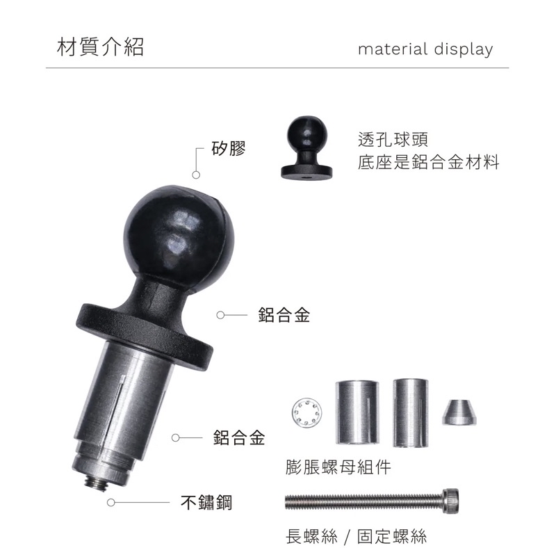 GC 四力架2配件 1英吋透孔球頭膨脹螺絲 goshop classic
