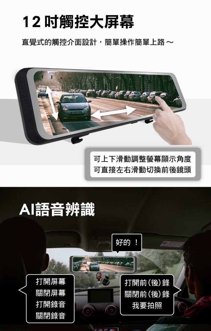 ★ 12吋超大IPS、AI聲控、觸控後照鏡款式