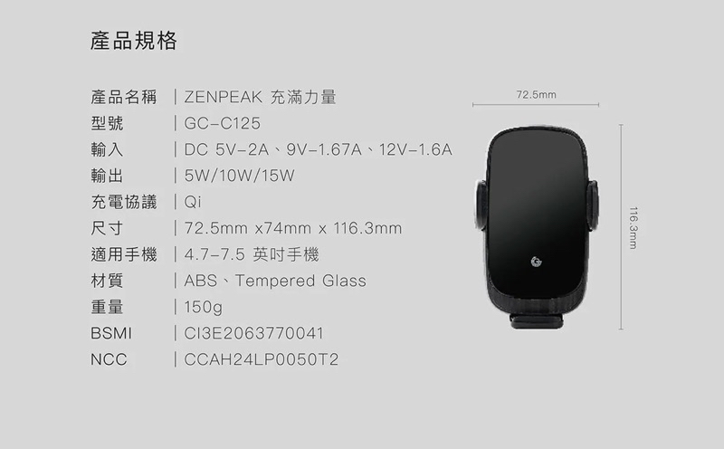 🏷 產品名稱:ZENPEAK 充滿力量15W 無線充電 車用手機支架