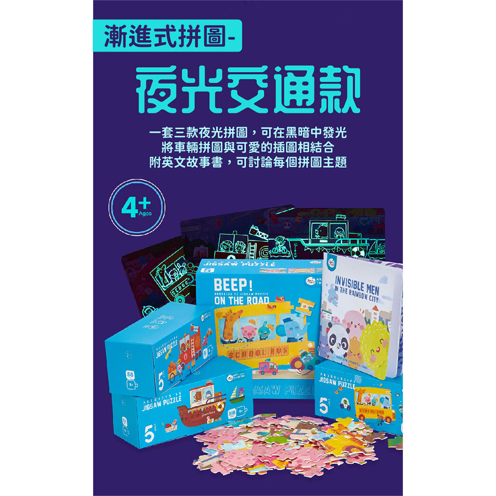 【JoanMiro 原創美玩 】漸進式拼圖-夜光交通款(88pcs+96pcs+108pcs) JM93790