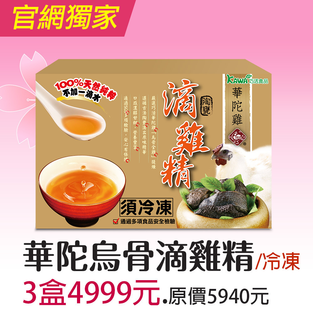 1.商品組合:【KAWA巧活】華陀雞-烏骨滴雞精禮盒(須冷凍)