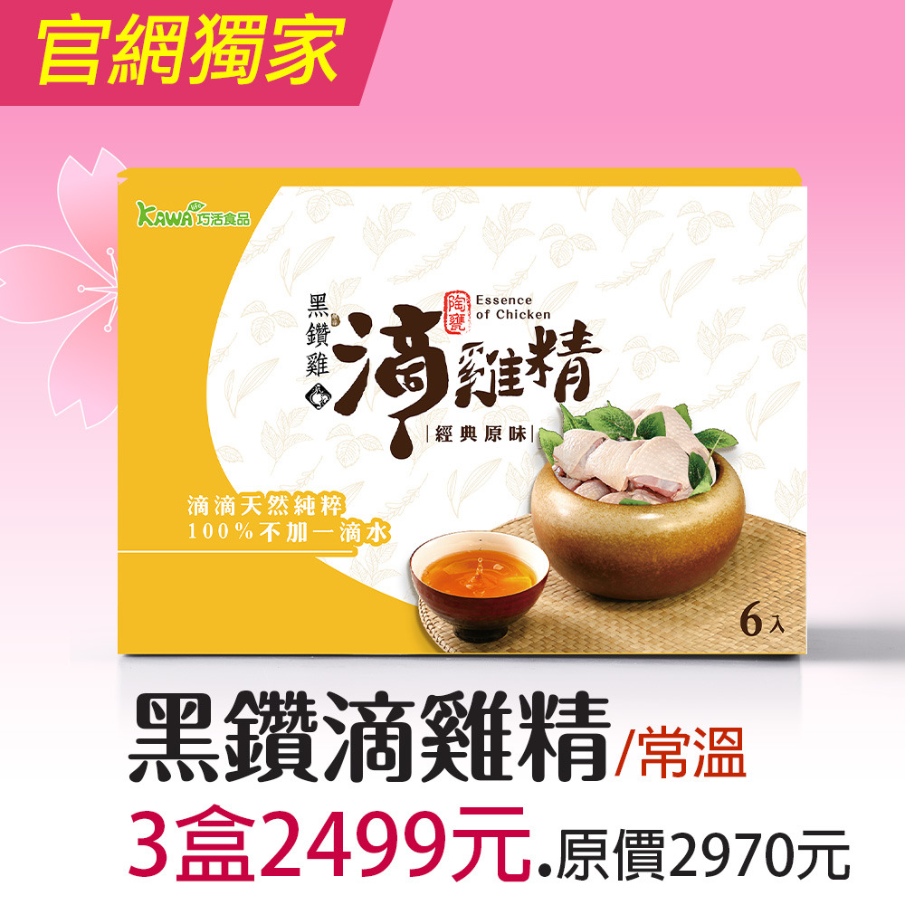 1.商品組合:【KAWA巧活】黑鑽雞滴雞精禮盒(常溫)