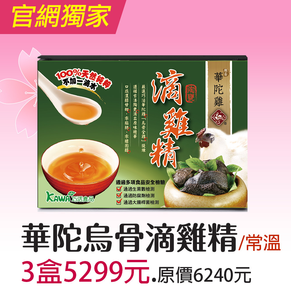 1.商品組合:【KAWA巧活】華陀雞-烏骨滴雞精禮盒(常溫)