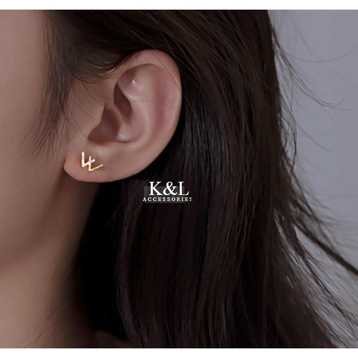 現貨。【全純銀輕14K金】歐美雙V微鑽 字母耳環 W耳環 輕奢系列 氣質 簡約 百搭 情人節 禮物 生日 耳環 小耳環