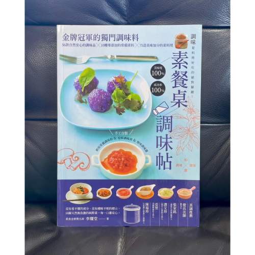 全新正版書籍 素餐桌調味帖 金牌冠軍的獨門調味料 素食料理食譜 素食是一種單純的選擇。   吃好素,就從「自製調味品」開始~ 運用自製天然素調味料&素料做出75道安心素食,每道菜色作法簡單、口味多變化,不管是原本茹素或想嘗鮮,打破您對素食的想像,絕對是一本很實用的食譜書。