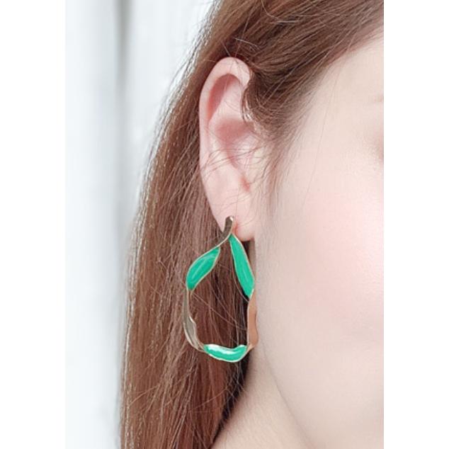 浮誇 時尚綠 扭結水滴 耳針 耳飾