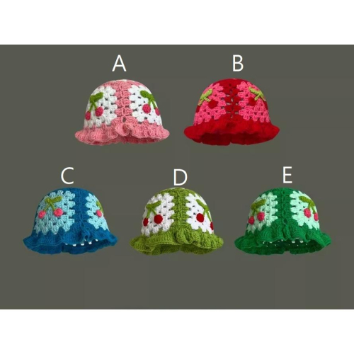 全新台灣現貨 顯臉小 ins鏤空毛線帽 日系編織花朵漁夫帽 手工編織毛線帽