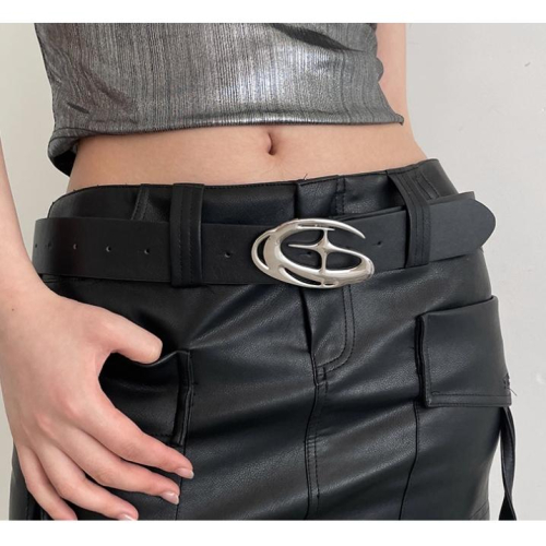 全新台灣現貨 腰帶(十字星辰) 金屬設計感小眾 百搭黑色皮帶ins風潮
