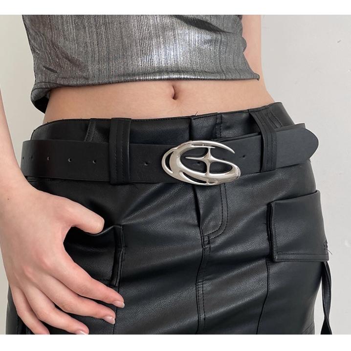 全新 腰帶 金屬設計感小眾 百搭黑色皮帶ins風潮 (大約尺寸:公分)長106 寬3.7
