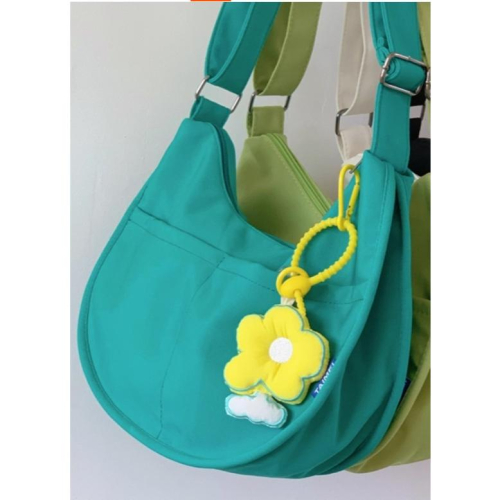 全新 大容量通勤包日系ins湖水綠復古餃子包純色百搭斜背包少女帆布包 有附黃色小花掛件喔~^^~ 質感很棒喔!!! 尺寸大約:長33 底寬10 高20 (公分)