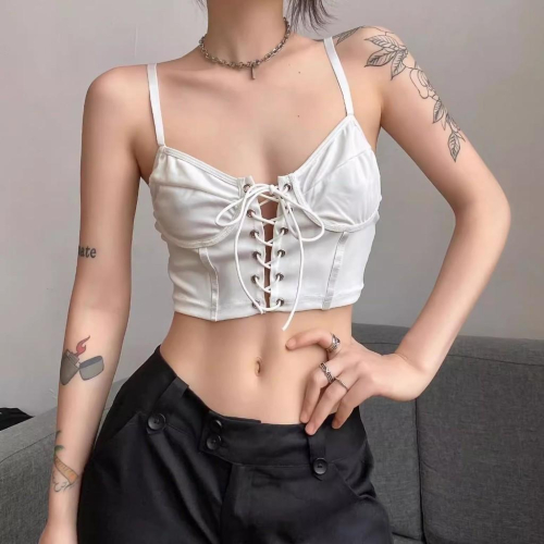 全新台灣現貨 歐美 辣妹小眾 純色吊帶上衣露背繫帶短版小背心