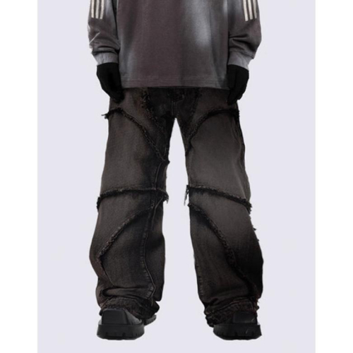 全新台灣現貨 美式解構重工水洗做舊牛仔褲 直筒寬鬆流蘇闊腿拖地長褲 男女皆可穿