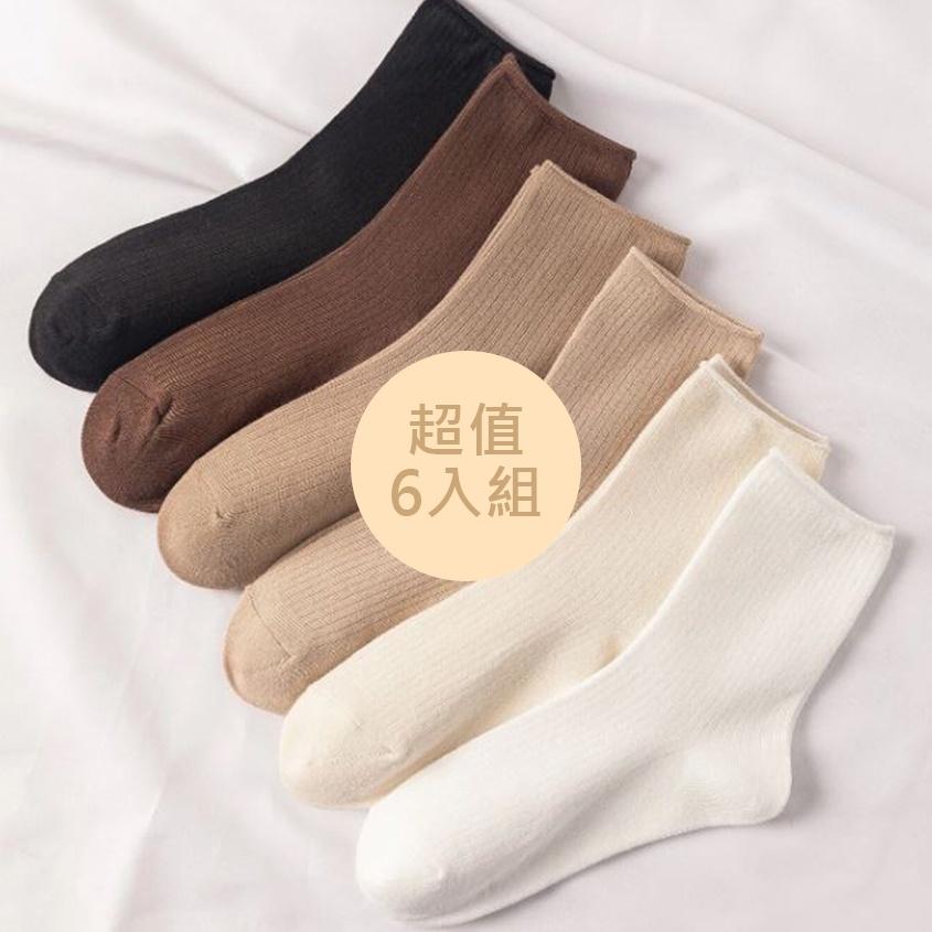 (超值6雙組)素色中筒襪 長襪 奶油色 咖啡色 黑色