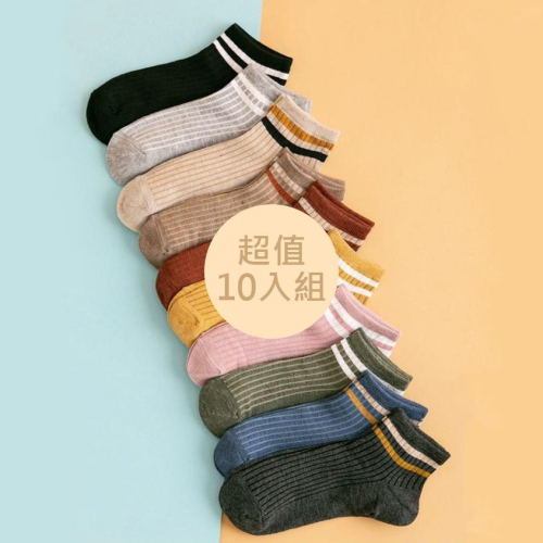 (超值10雙組)條紋船襪 基本款短襪 女襪 包色10雙組