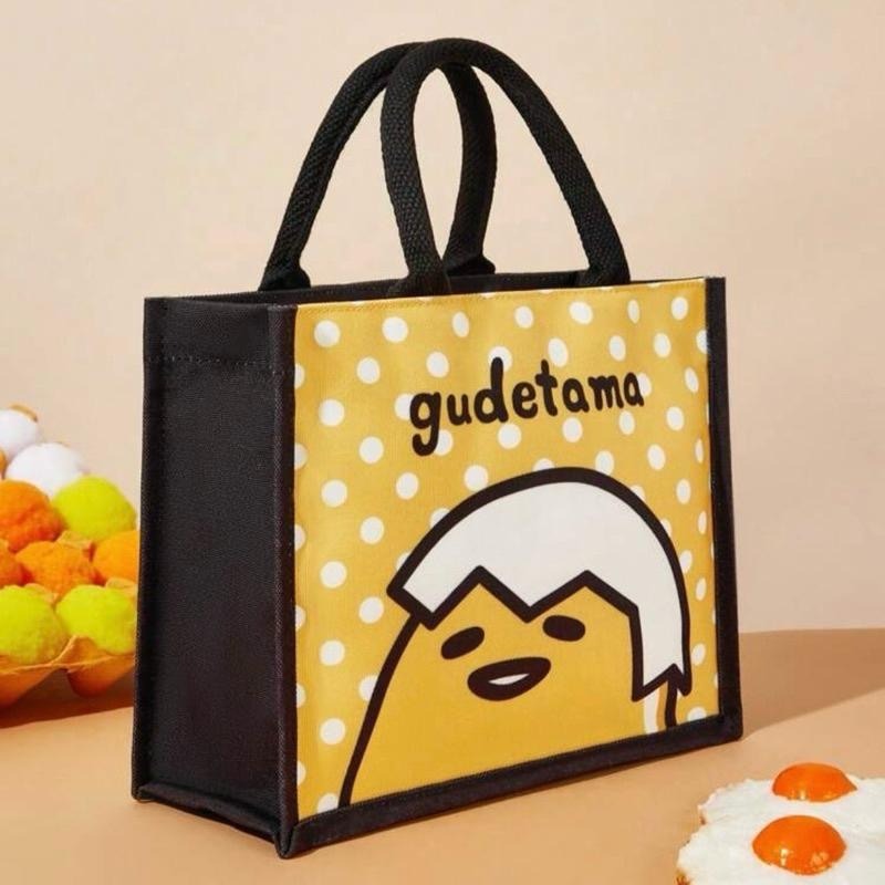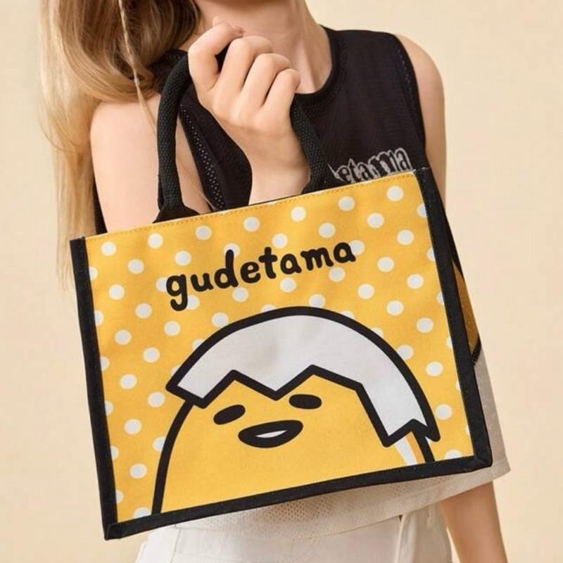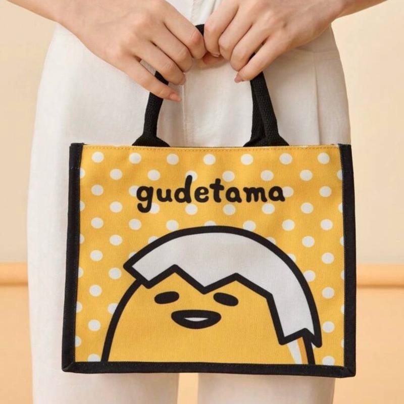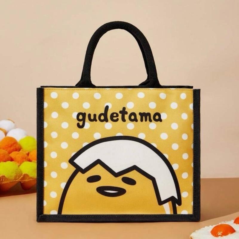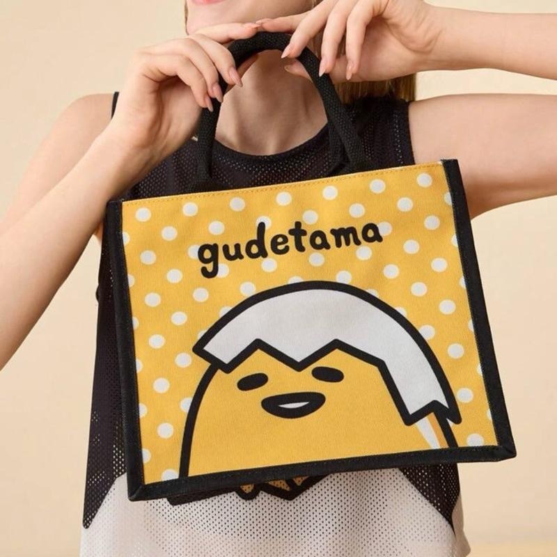 正版聯名 蛋黃哥 Gudetama 黃色卡通圖案手提包 手提托特包 便當包