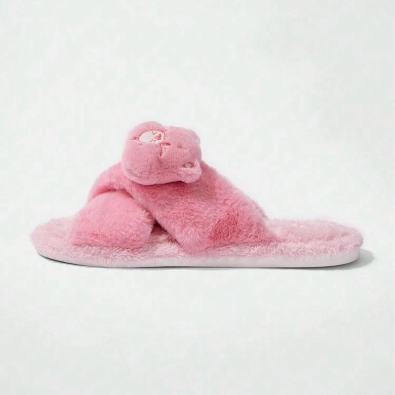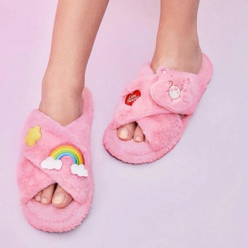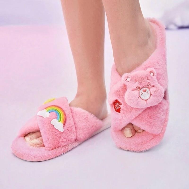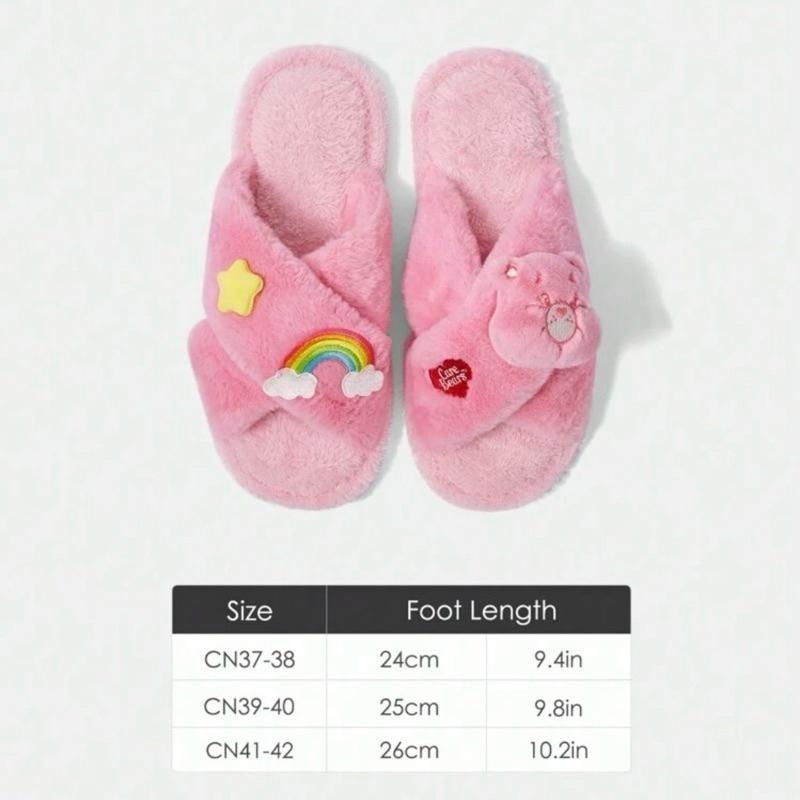 正版聯名 彩虹熊Care Bears 女生款毛絨3D可愛彩虹熊與星星裝飾室內拖鞋 室內拖
