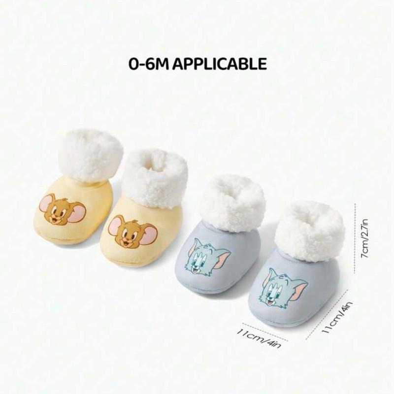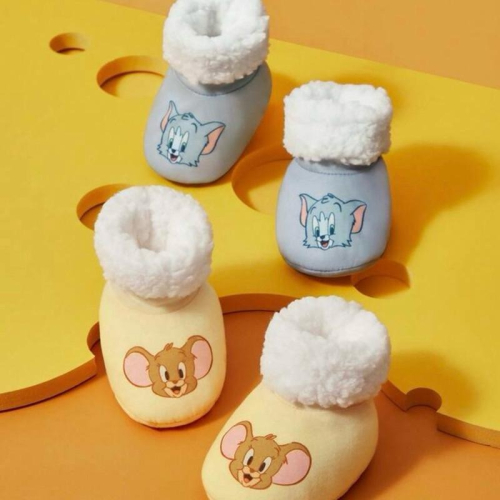 正版聯名 TOM&JERRY湯姆貓和傑利鼠 85週年 絨毛內襯可愛寶寶襪 嬰兒襪子(2入組)